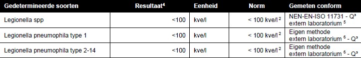 LEGIONELLA WATERONDERZOEK A1. Inleiding De groei van Legionellabacteriën in (drinkwater en industriële) watersystemen kan blootstelling van medewerkers aan het organisme tot gevolg hebben. Die blootstelling kan leiden tot een gevaarlijke microbiologische infectie. X controleert op verzoek van haar opdrachtgevers verschillende soorten water gerelateerde systemen, zoals drinkwatersystemen, bevochtigingsystemen, koeltorens, enz. op de aanwezigheid van legionella door middel van het nemen van watermonsters, welke vervolgens genomen worden en geanalyseerd conform de wettelijk geaccepteerde NEN 11731.