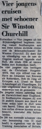 In 1973 toen ik op de Christiaan Huygensschool zat, werd mij gevraagd of ik een zeereis met een schoener wilde maken.