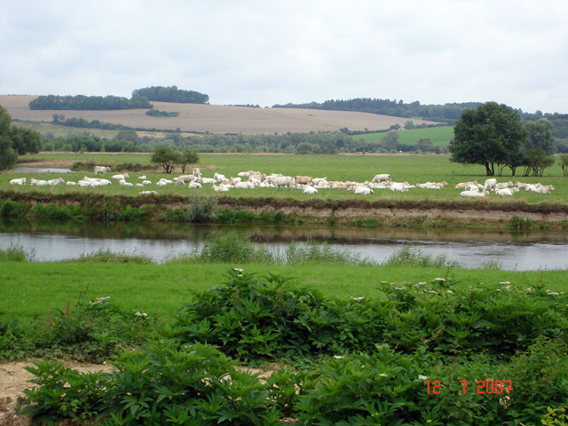 Donderdag 12/7 willen we naar Verdun varen. We gooien om 9uur los. Het is dan wel wat werk om de grondpennen van aarde te ontdoen en de touwen schoon te maken die vol met gras en distels zitten. De Maas loopt hier weer vlak langs het smalle kanaal. We hebben maar één sluis tot Verdun.
