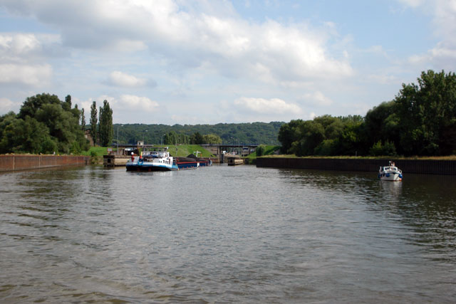 Na de sluis is het stationair draaien want de 110m loopt niet zo snel, maar zuigt enorm. Ik roep hem op en het is geen probleem als we hem willen passeren. Ondanks dat zo'n schip dan gas terug neemt, duurt het lang voordat je hem voorbij bent. Maar voor de volgende sluis ligt alweer een Belg de Cupidon te wachten. Na de sluis weer stationair en hetzelfde verhaal. Het grootste deel van deze tocht is saai varen.
