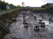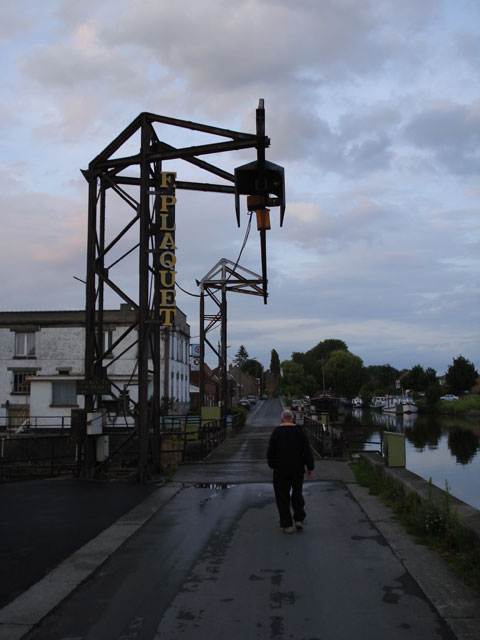 Het gaat niet zo snel want de andere boot vaart erg langzaam omdat zijn waterslot niet van het juiste type is. Ik roep alle sluizen op en over de bediening hebben we niets te klagen. Onderweg zien we dat er in verschillende dorpen feesten zijn. Uiteindelijk bereiken we sluis Fresnes om15:35 uur (laatste sluis in Frankrijk) en gaan ik en Joop iets sneller varen, want we willen zeker sluis Péronnes halen die maar tot 6 uur draait. Precies half zes zijn we bij sluis Péronnes en roepen we de sluis op. Ze hebben volgens mij niet zo veel zin meer om te draaien, maar na een tijdje gaat hij toch open. Dit is een vrij diepe sluis zonder drijvende bolders. Als we in de sluis liggen komt ook onze medereiziger aan en er komt nog een polyester boot van een meter of 7 bij. Met z'n vieren schutten we 6 meter omhoog. Als we bijna boven zijn loopt er een touw vast bij de polyester boot, waardoor zijn achterschip bijna onderwater wordt getrokken. Mar drukt op de toeter en uiteindelijk komt de sluiswachtster poolshoogte nemen, natuurlijk veel te laat. In dit soort sluizen hoort de sluiswachter goed op te letten en de sluis bij problemen te stoppen. Gelukkig is het touw net voordat de boot zou vollopen losgekomen en schiet de boot omhoog. Ik denk dat deze mensen er een trauma van zullen overhouden. We verlaten de sluis en varen het meer op naar de jachthaven. We worden daar door de eigenaar ontvangen en vastgemaakt.