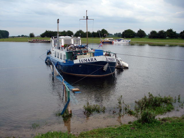 We varen naar het gat van Maurik waar we ankeren aan een schiereiland uit de wind. We zwemmen en maken de boten schoon. Er blijkt onder de molecuul een compleet mosselbed te zitten. Met een aluminium plaat schrap ik het er zo goed mogelijk af. We zien van de winter wel hoe het er uit ziet. Door het koude water krijg in nog kramp in mijn been en dat is geen pretje.