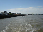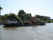 Op de rechter foto boven een spreuk die langs de Rupel staat: Antwerpen